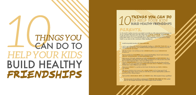 For this month’s toolbox resource, we wanted to provide you with some practical things you can do as a parent to help equip your kids to learn how to build, develop, and discern healthy friendships; the kind of friendships that will lead them closer to Christ instead of pulling them away. So try to incorporate some (or all) of these things into your life and family rhythm as you lean into this crucial part of their development.