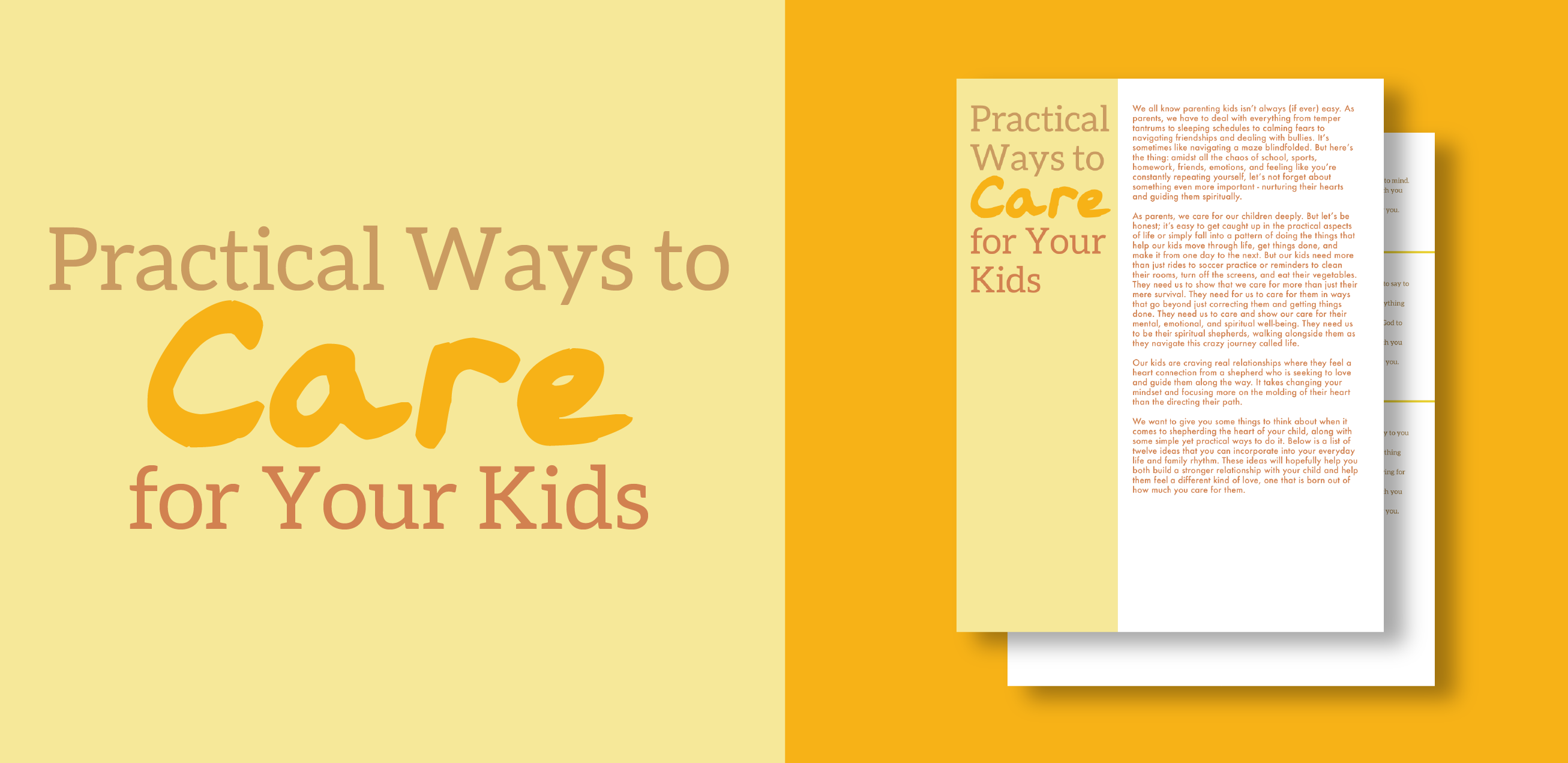 This month’s Toolbox Resource for parents is a list of simple yet practical things they can do to care for their kids in a deeper way. Due to the hustle and bustle of life, parents can easily fall into the trap of believing that care equals providing for their children’s physical needs and worldly desires. On one level, that’s true. But true care actually occurs when parents pay attention to the mental, emotional, and spiritual needs of their kids and parents stepping into meeting these needs on a regular basis.